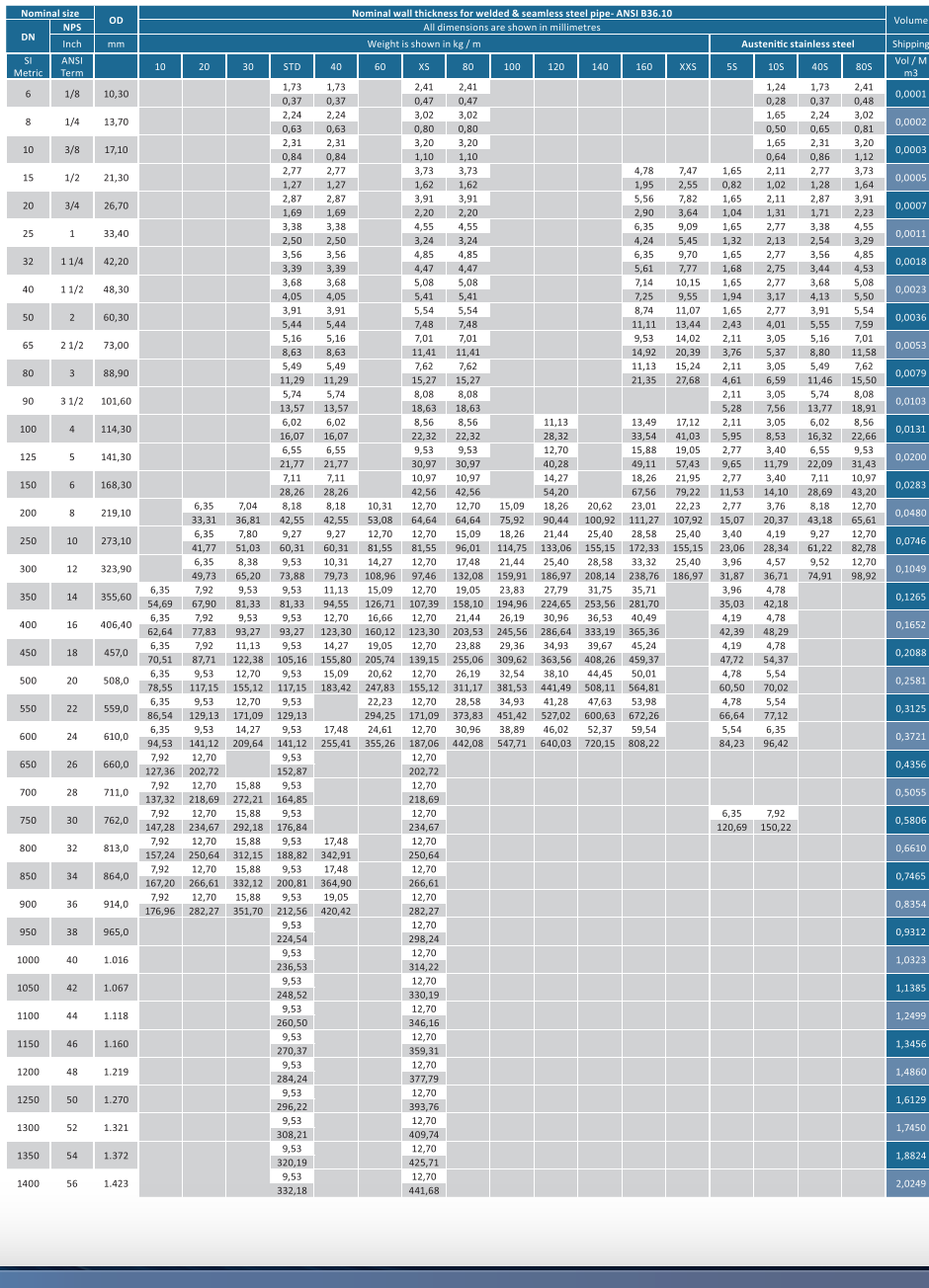Grades (Pipes): 304/L/H, 316/L/H, 321/H